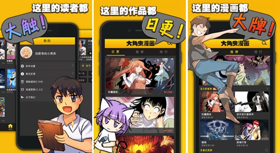 3.豪华大触全线入驻大角虫漫画拥有国内豪华漫画和轻小说作者阵容,孙渣、权迎升、壁水羽、兔B、大叔酱、纳川、默、七月初七、猫哭无声等国内漫画大家,墨熊、海潮探长、墨三乌、热晓等轻小说大大,欢迎围观。